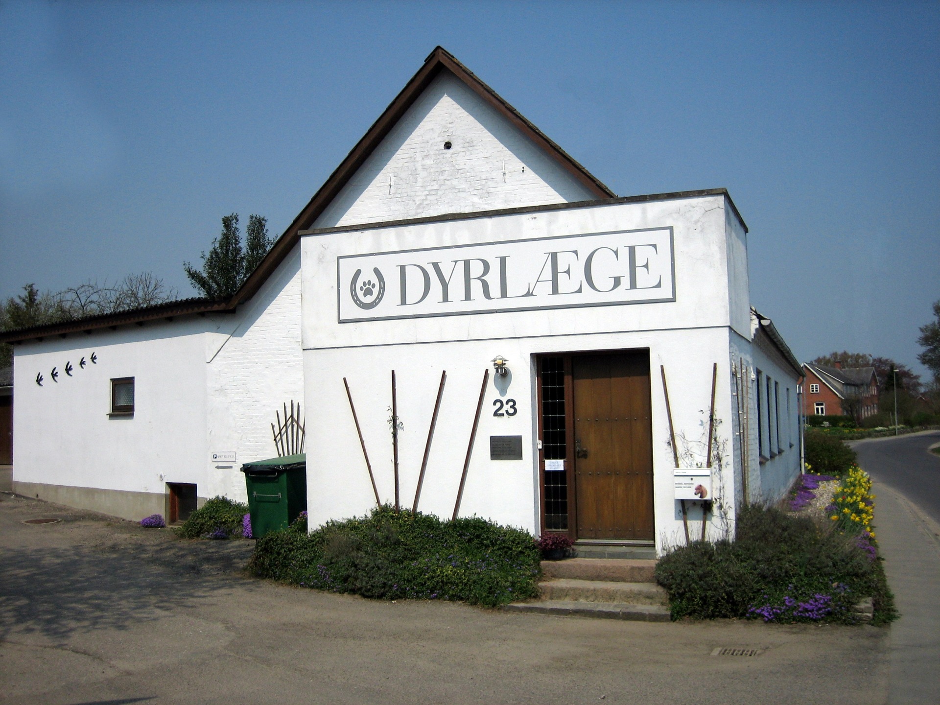 Skolevej 23 var i gamle dage købmandsbutik, og i de første år dannede det store hus på godt 200 kvm ramme om både dyreklinik og privatliv. Men efterhånden som der blev mere travlt på klinikken, og mere udstyr at finde plads til, blev det et stort ønske at dyrlægepraksis skulle overtage hele huset. Derfor flyttede vi ud i 2008, og dette betød især bedre forhold for operationspatienter og mere ro omkring konsultationerne.